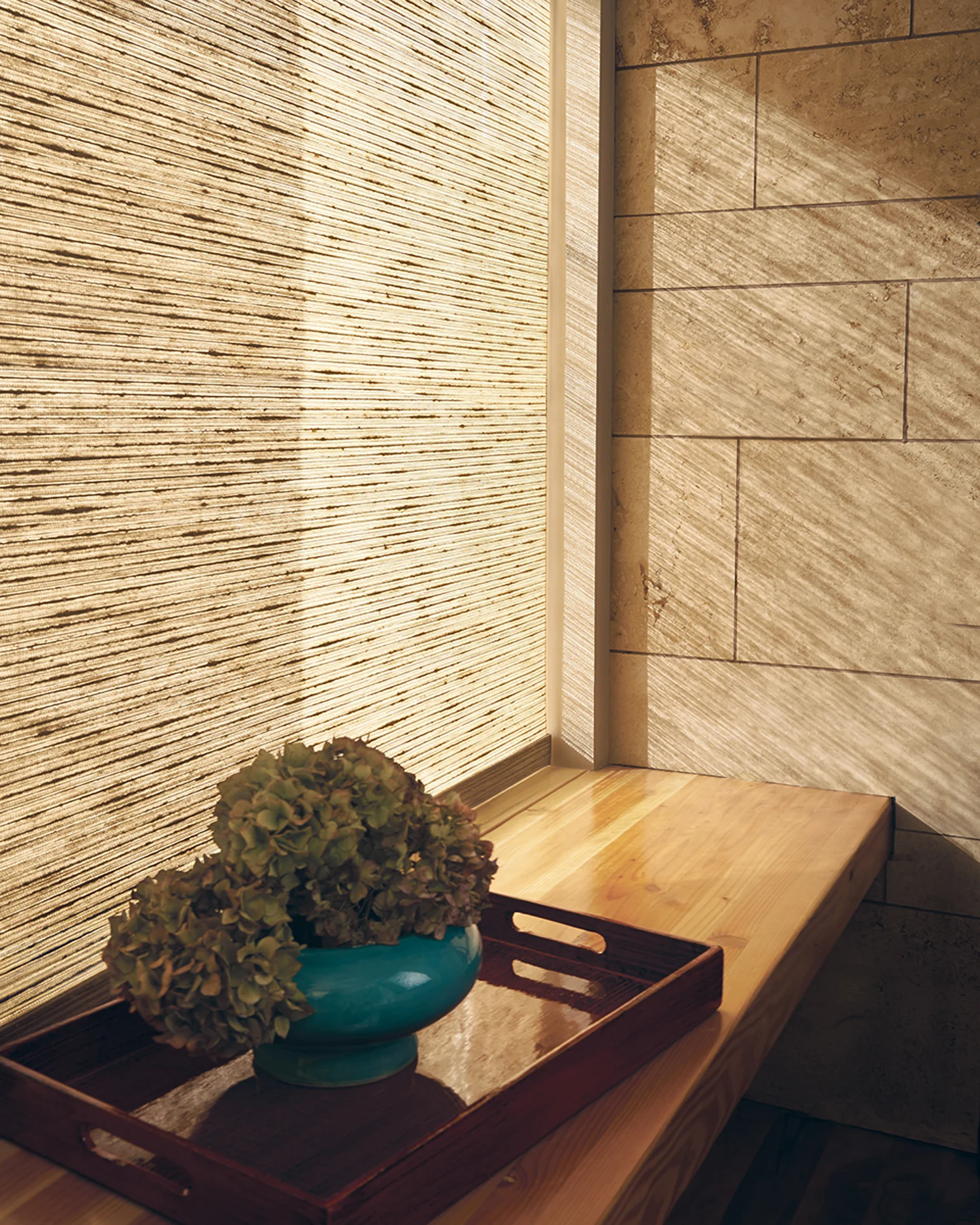 The translucent fabrics that many of the products offer are specially engineered to diffuse harsh sunlight and draw it deeper into the room—dispersing the light to help illuminate your home naturally and reduce the need for artificial light. Look at Silhouette Window Shadings.