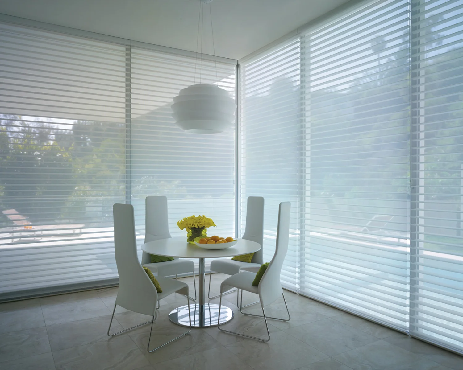 Select Hunter Douglas products feature innovative slats and vanes that allow you to deflect and redirect sunlight precisely where you want. Look at Pirouette Window Shadings.